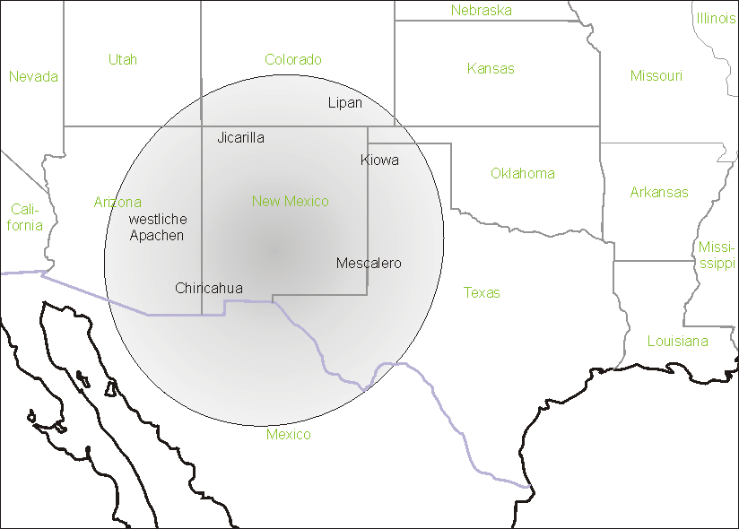 Aber auch, wenn die ursprüngliche Herkunft der Apachen umstritten ist, so ist es doch unstreitig, dass ihr traditioneller Lebensraum nicht nur New Mexico und Arizona umfasst sondern auch über den südlichen Teil Colorados, westliche Teile von Oklahoma und Texas bis hin zu mexikanischen Gebieten von Chihuahua und Sonora reicht.